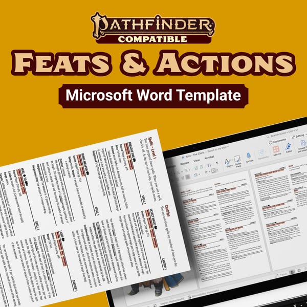 Pathfinder 2e: Actions & Feats Template (Microsoft Word)