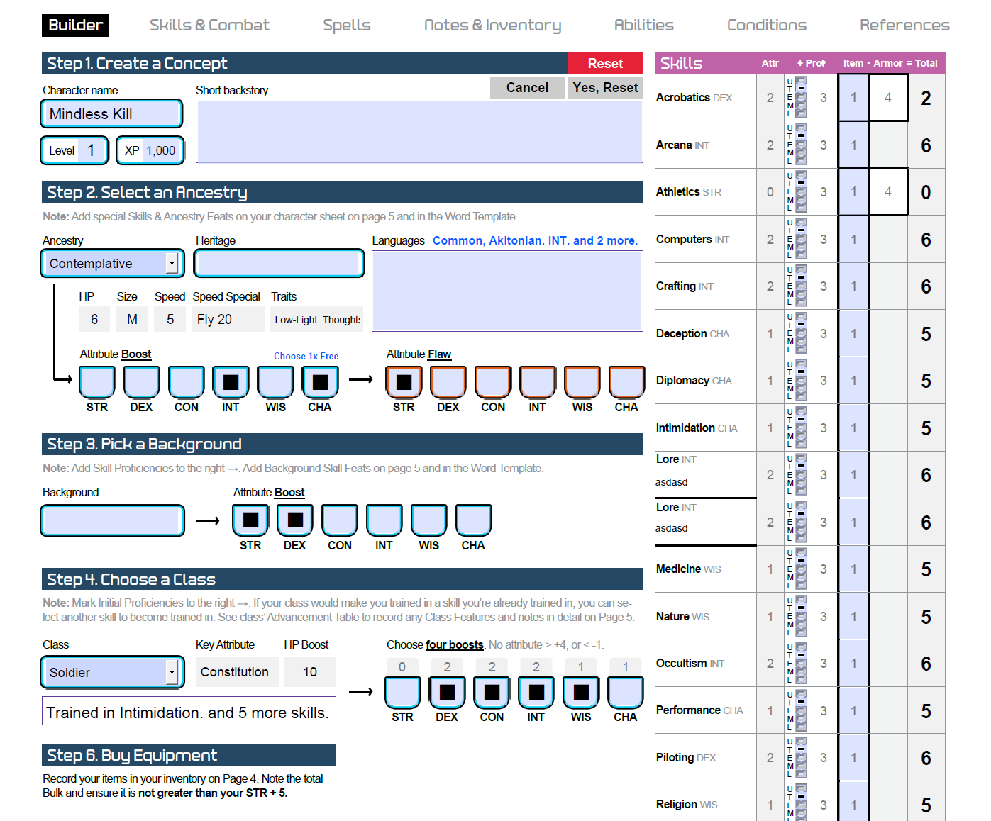 The Builder follows the steps in the Starfinder 2e Player Core, as well as the Mechanic and Technomancer Playtests documents. It is designed to guide new players, and fills in the details so it happens fast! It includes all Ancestries & Classes available for Pathfinder 2e Remaster and Starfinder 2e!
